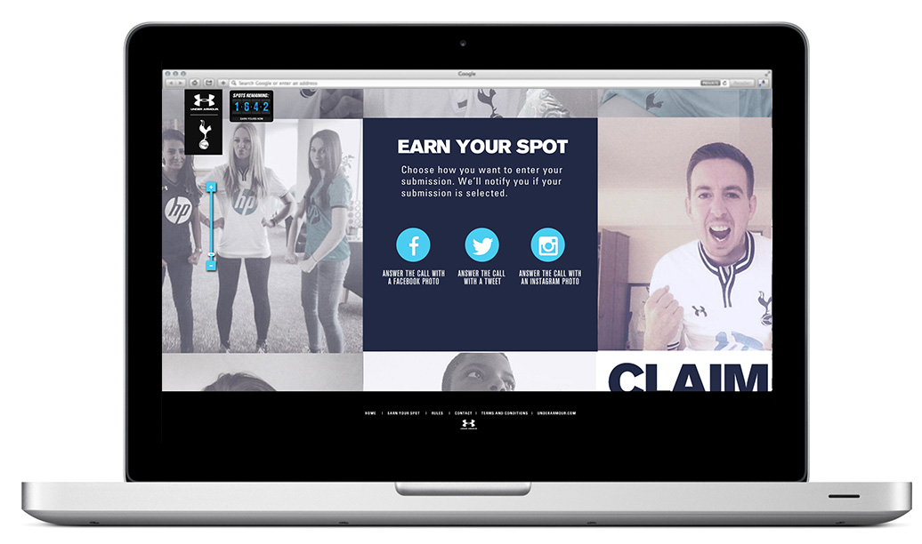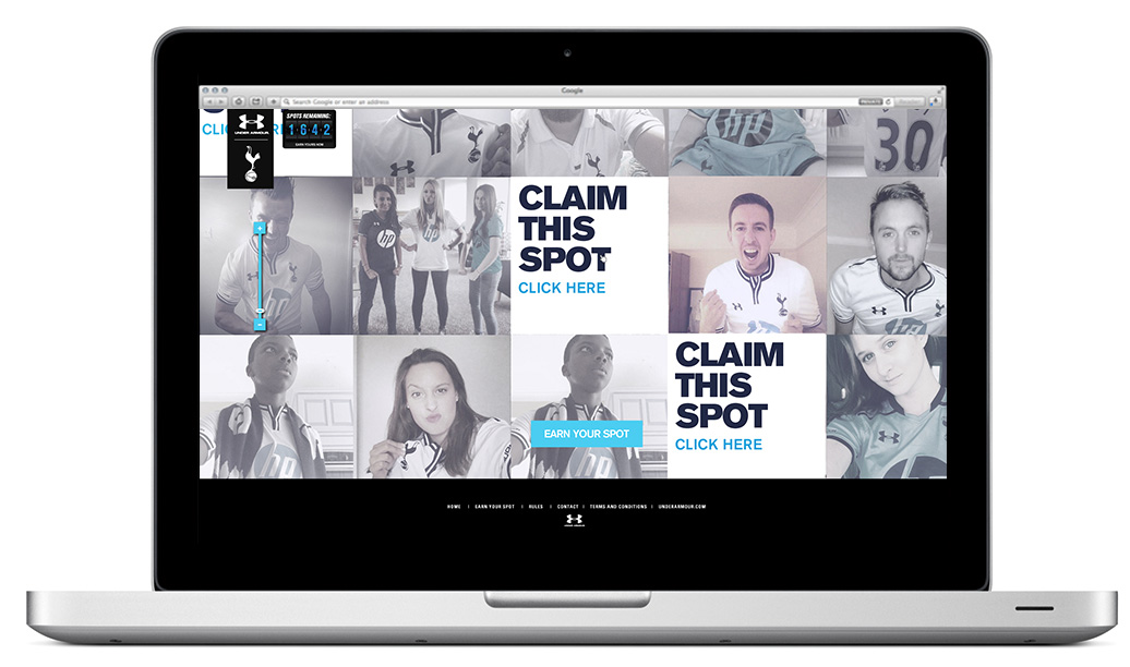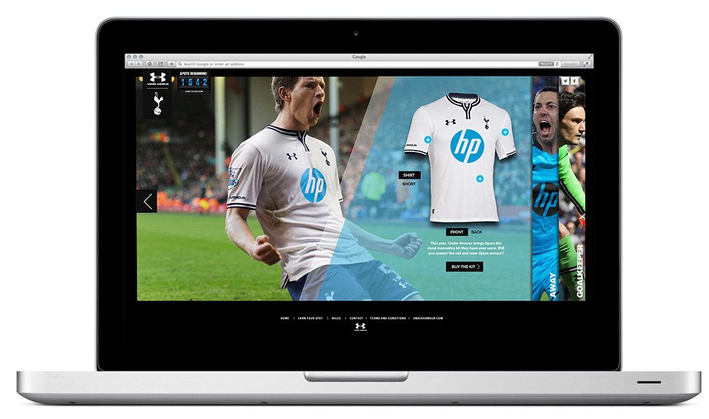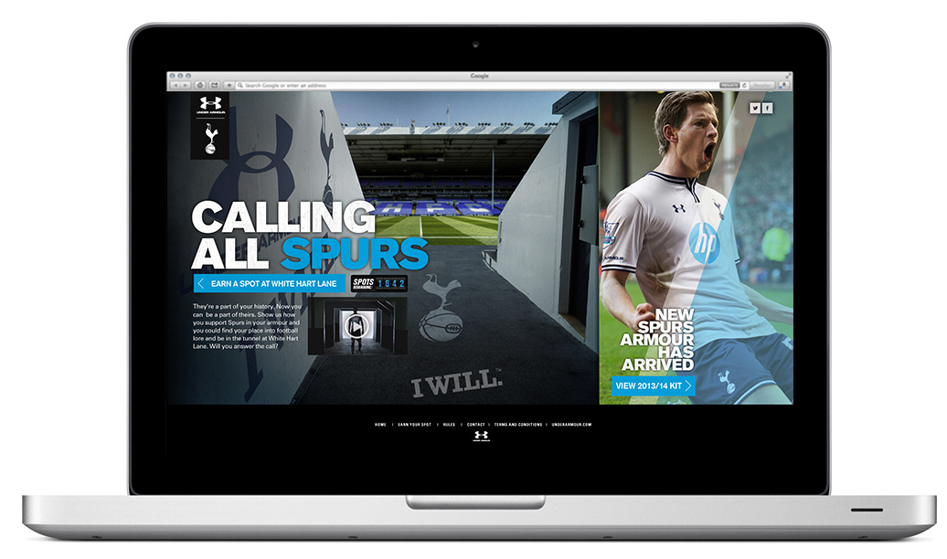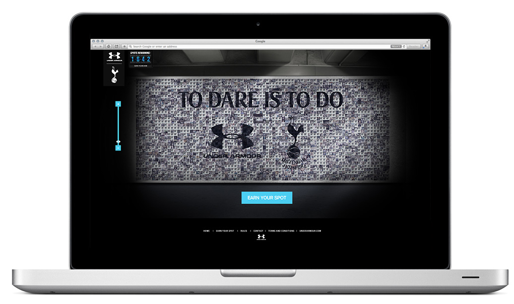 As part of their push into international territory, Under Armour became the official kit (that's British for uniform) sponsor of English Premier League team Tottenham Hotspur. To promote this partnership, we challenged spurs fans worldwide to show themselves in their new kits, the best photos would be immortalized as part of a permanent monument at the Spurs' stadium, White Hart Lane.